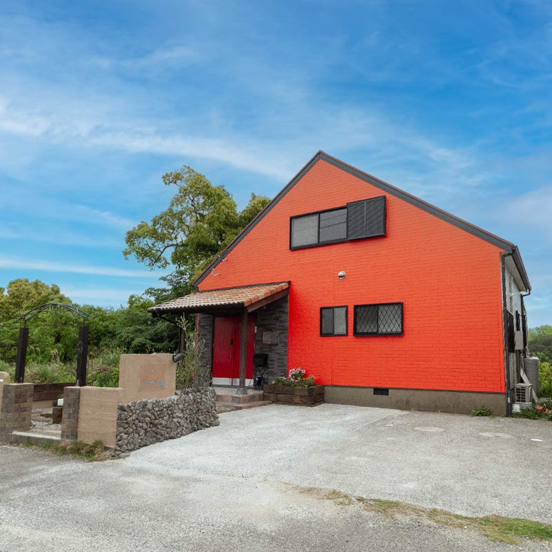 オレンジ色の2階建て