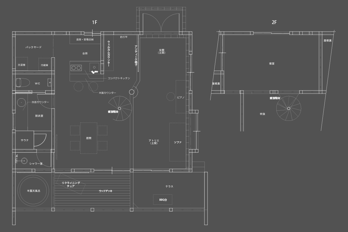 螺旋階段が目を引く室内
